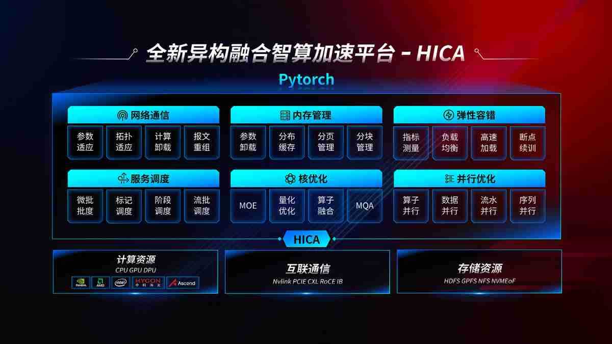 通过自研的服务层、、、、中间适配层、、以及调度编排算法,,,采用数据并行、、、模型并行等多种并行方式,,把并行计算任务进行有效的分解,,使其分别由相应的软件栈和算力资源来承接。。。当GPU资源变化,,,HICA可以实时动态调度计算子任务并调整模型拓扑和架构,,,,以充分聚合各种算力资源。。。